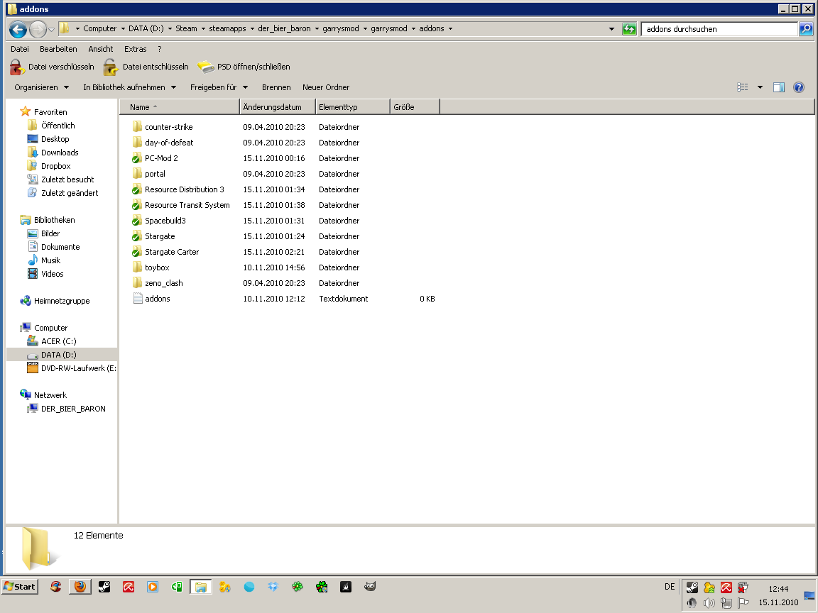 2. den gedownloadeten Ordner öffnen (im Normalfall "Stargate" genannt) und dann in diesem "addons" öffnen, in dem sich die Ordner "stargate", "stargate_resources", "catdaemon_stargate" und "gmdm_resources" befinden