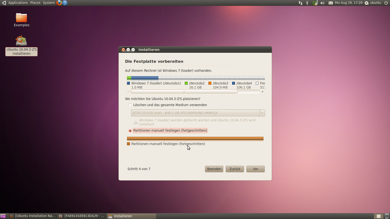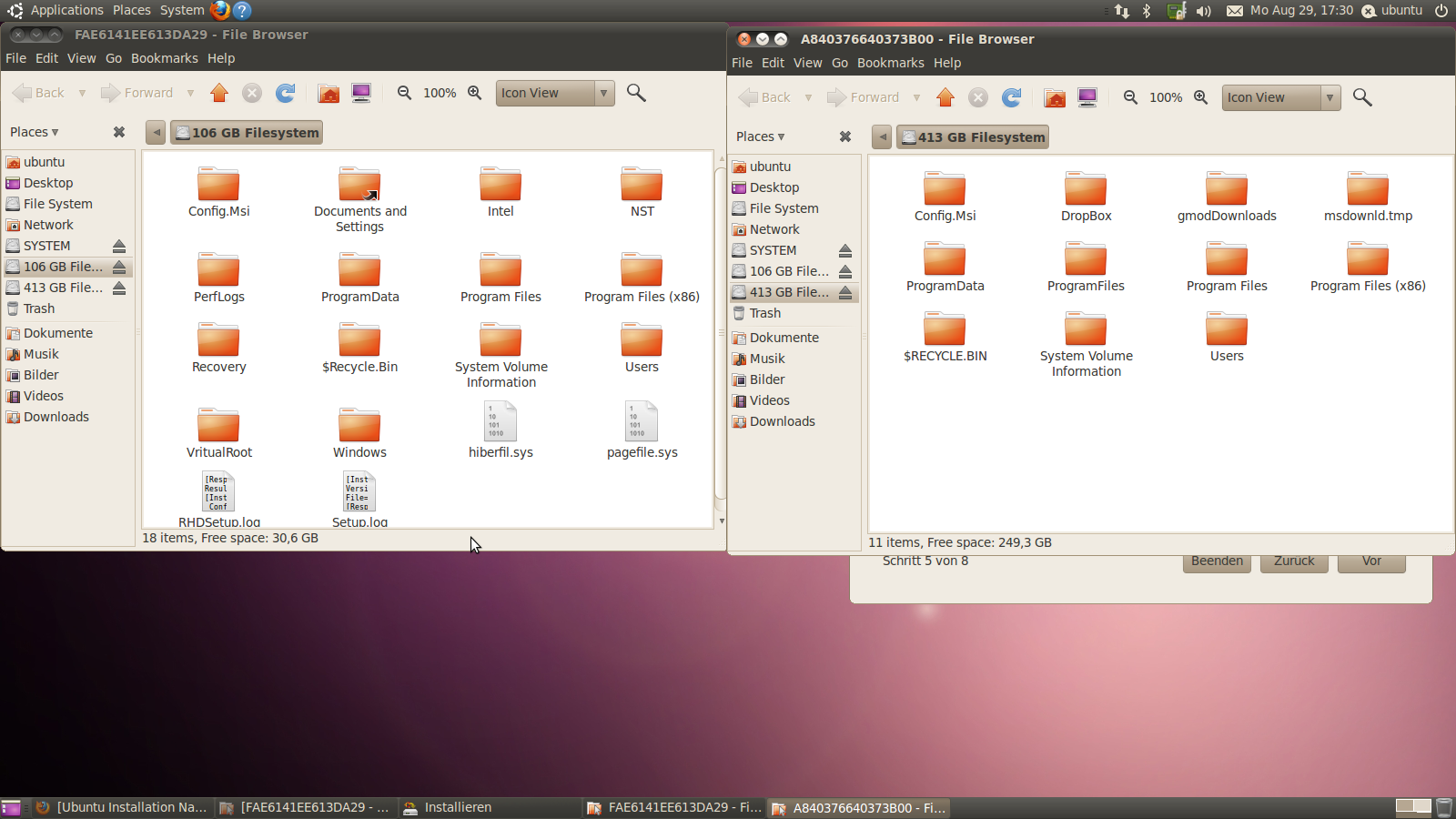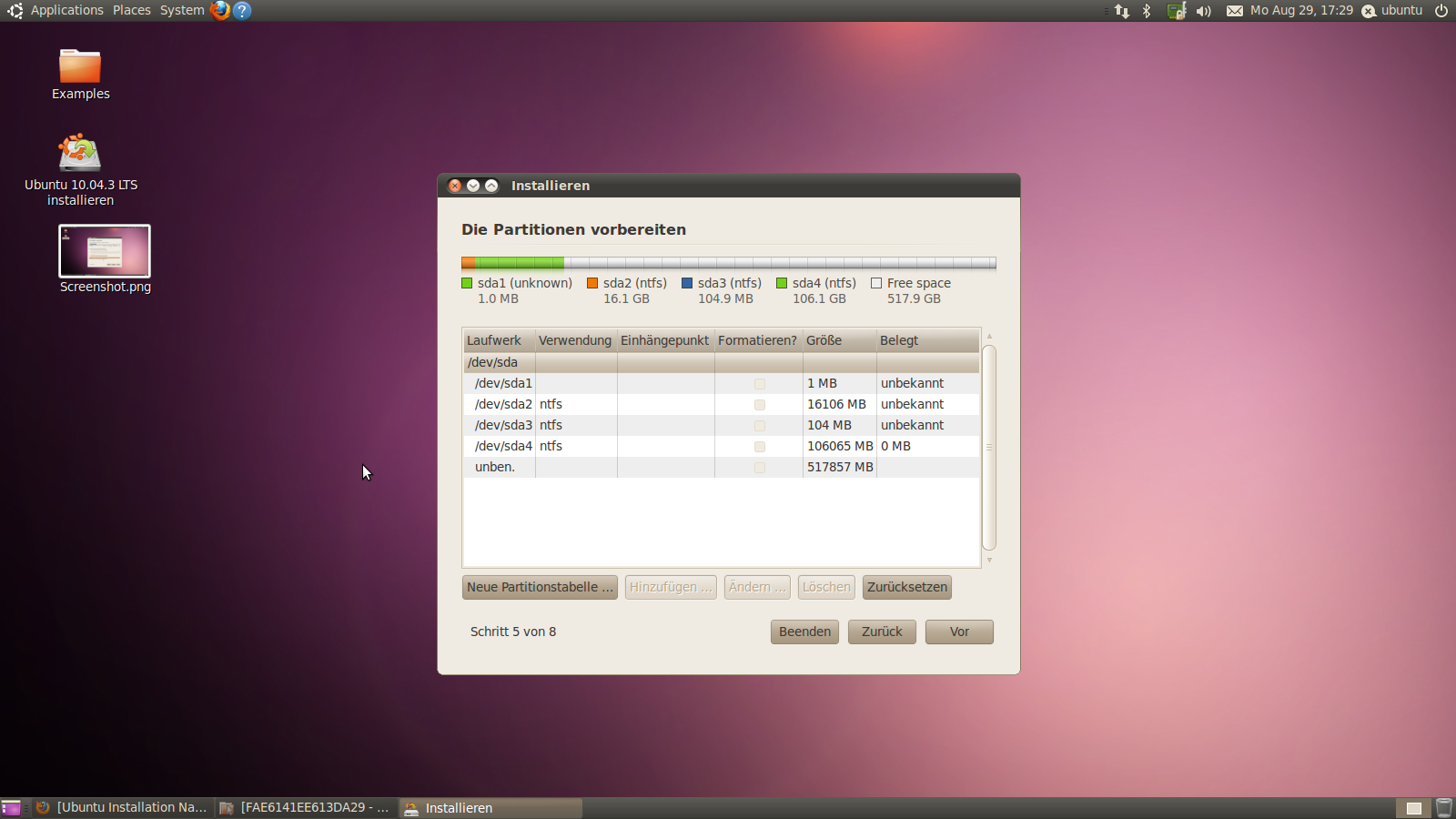 nun habe ich angst meine anderen platten zu löschen, angehängt habe ich euch mal ein paar bilder wo ich grade bin.