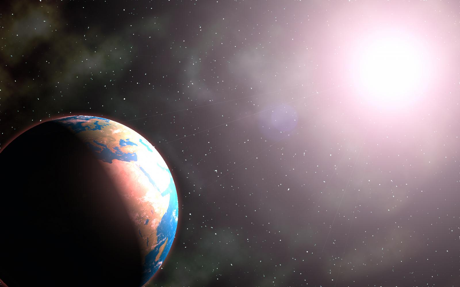 Wie man sieht ist de Planet sehr kantig. Das kann man umgehen wenn man die Kugel rendern lässt. Leider schmeißt das Programm jedoch dann das ganze Licht über Bord:
