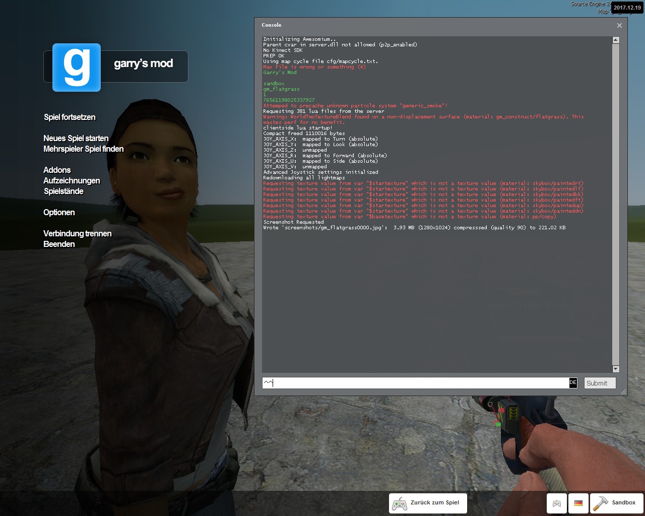 Ich hatte vorhin alle Addons deabonniert als auch [FONT=Impact]Garrys Mod[/FONT] vollständig reinstalliert.