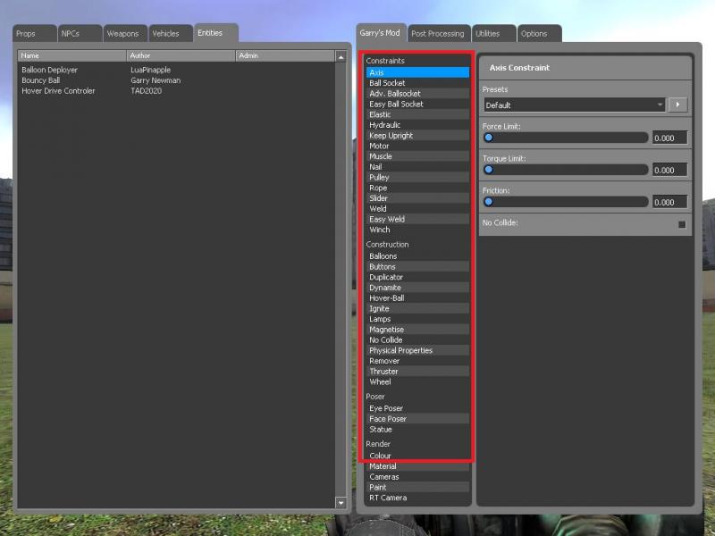 ja hmm.. also in youtube sehe ich manchmal tutourials die haben ne ganz große liste zu auswahl bei 'Q' oben Rechts Garry's Mod