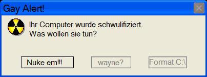 Is ja net schlimm, wollts nur loswerden Achja, falls hier jemand wirklich Schwul ist, ist nur ein Joke. also nix für Ungut