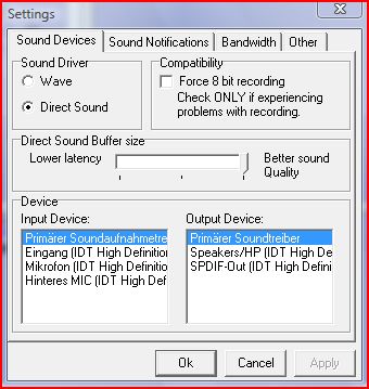 Wenn es dir nur um TS² geht, könntest du mal versuchen, das Mikrofon (IDT High Definition) bei Input Device auszuwählen. Oder einfach alle durch. Output musst du entscheiden. Ich glaube Speakers/HP ist das, was du hast.