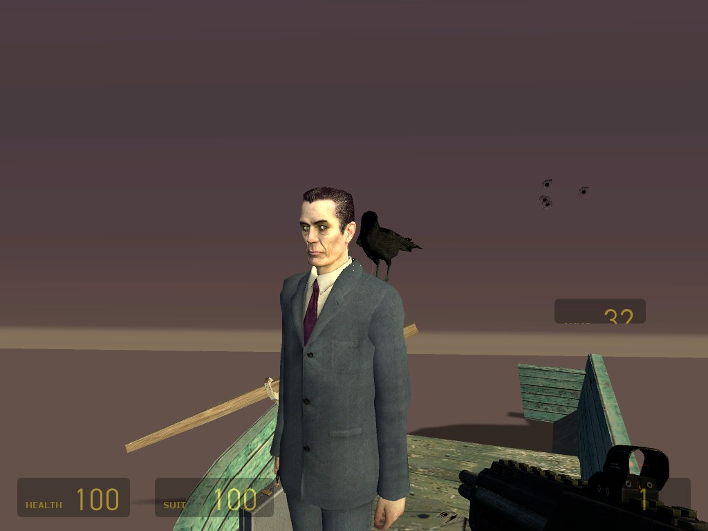 Ein lustiges Easteregg in HL2 wo der Gman unter der eigentlichen map in nem boot mit ner krähe steht !![]()