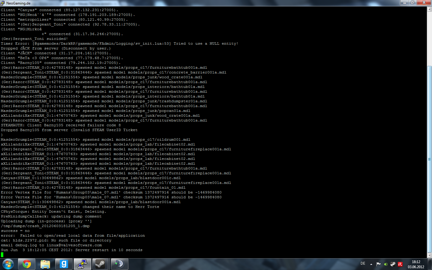 Leute... hab ein RIESEN Problem... mein Server crashed die ganze Zeit, und ich hab keinen Plan warum...