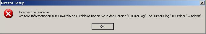 Hi, immer wenn ich DirectX Installieren will (habs schon mit verschiedenen Versionen ausprobiert) kommt dieser Fehler hier: