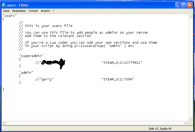 Mach beim Super-Admin die // weg. Das was du da weggemalt hast, ist wohl dein Name. Solang die // da sind, wird die ID & der Name nicht gelesen. Garry ist auch kein Admin.